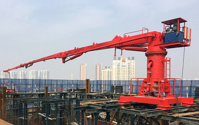 由臂架、塔身以及底架組成。底架與爬模架體牢固連接傳遞施工載荷。整機不需要爬升動力,隨爬模一起爬升。