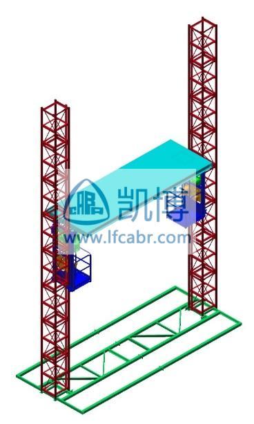 該機可以做到一機多用,是運送鋼筋、混凝土及施工人員的三合一型設備,廣泛應用于電力建設中的煙囪和冷卻塔施工。