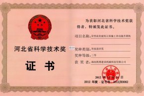 河北省科學技術獎三等獎 現代工程建設動臂式大型起重機